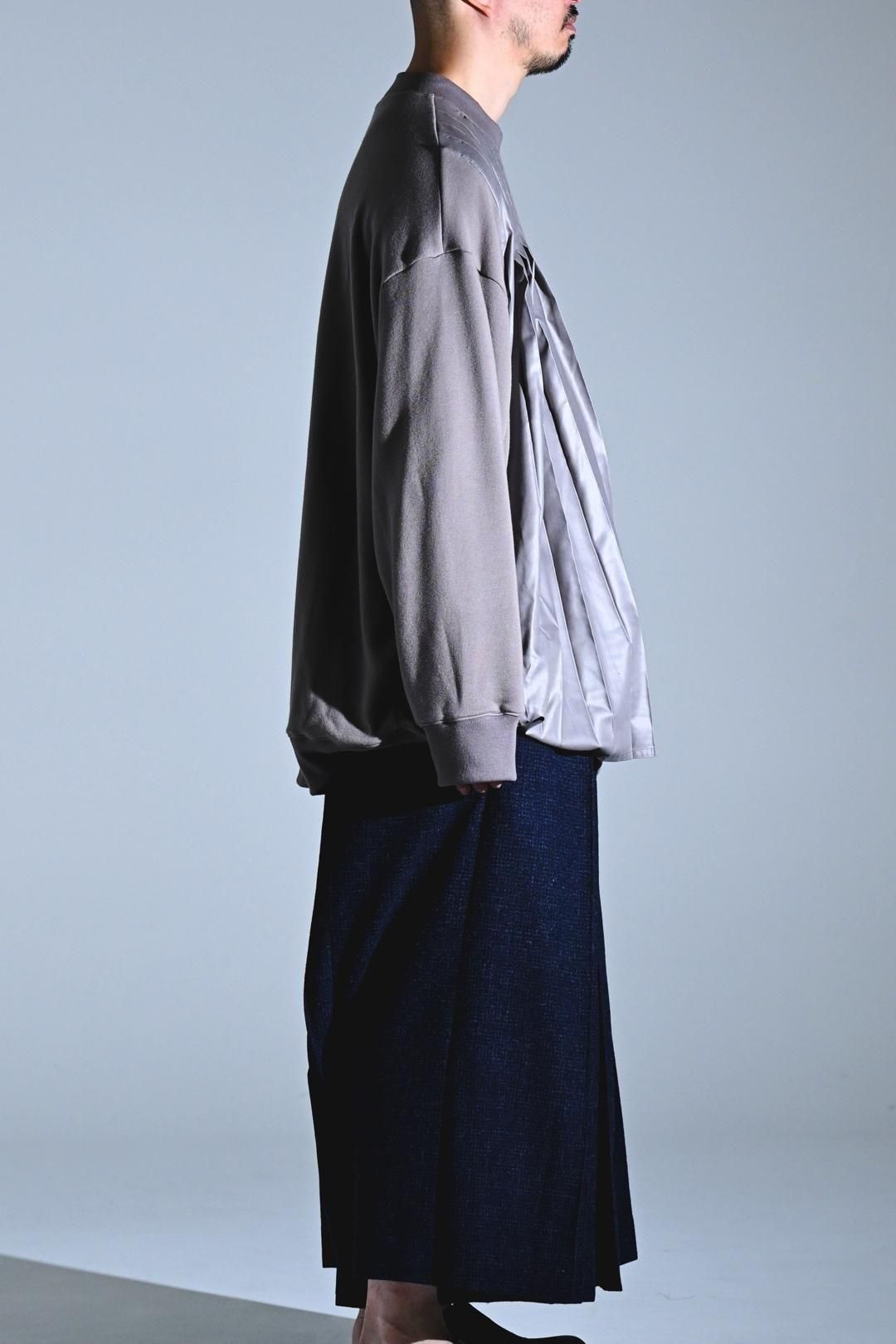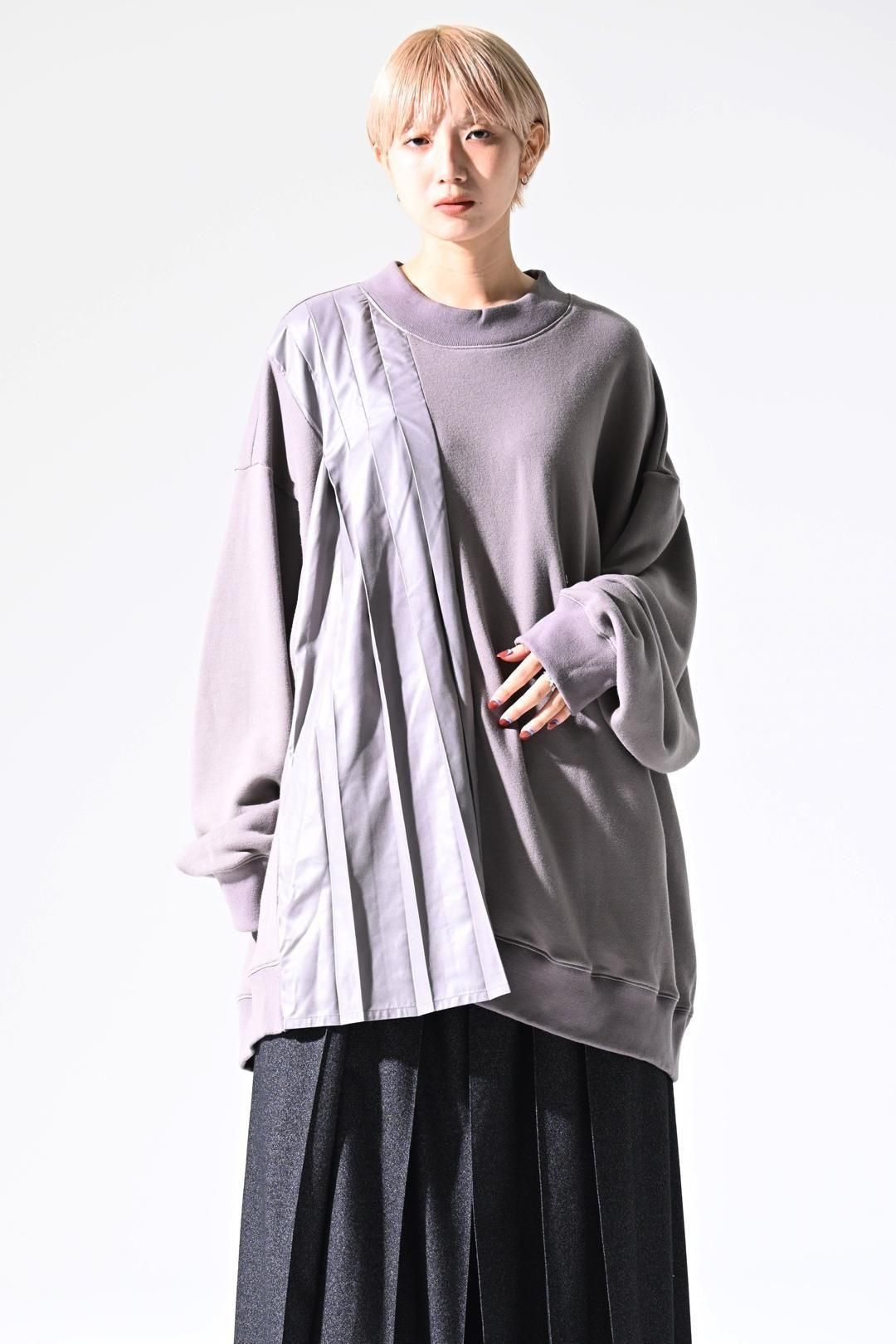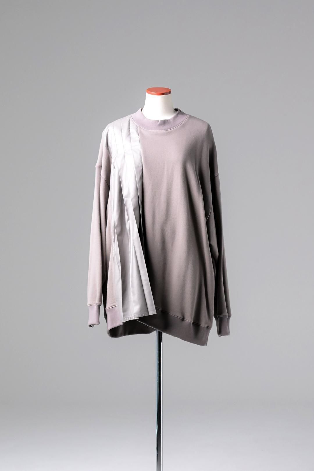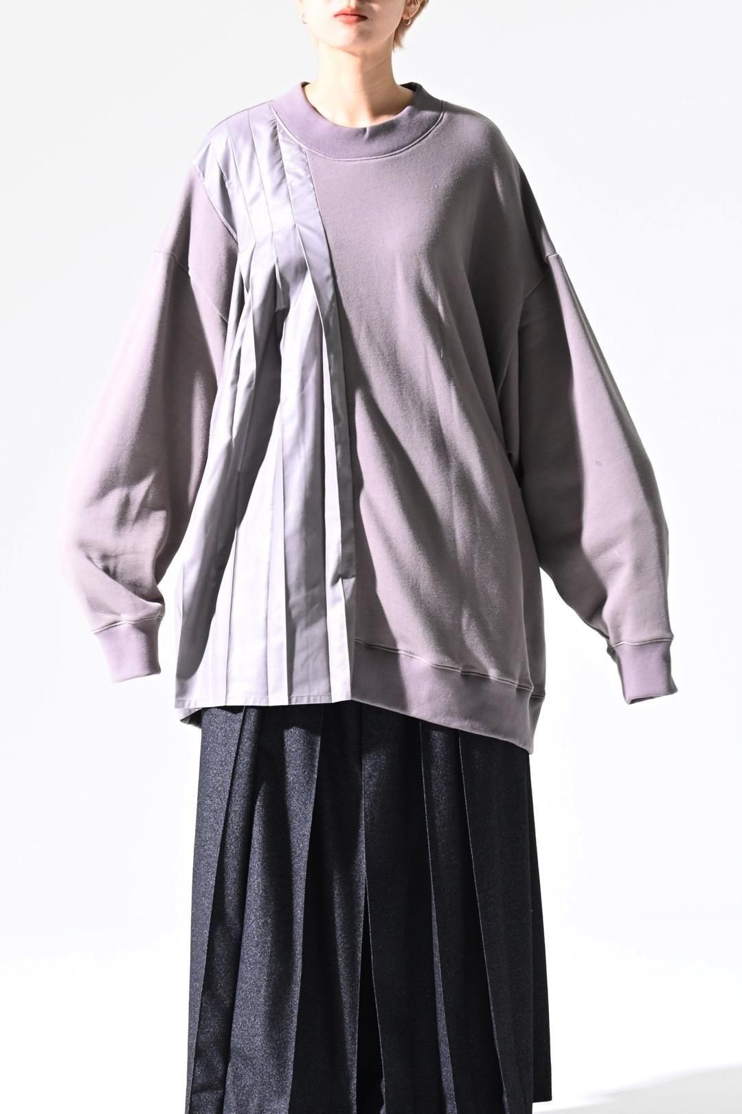 オーバーサイズのスウェットにプリーツ生地を大胆に挟み込んだ独創的な1着。